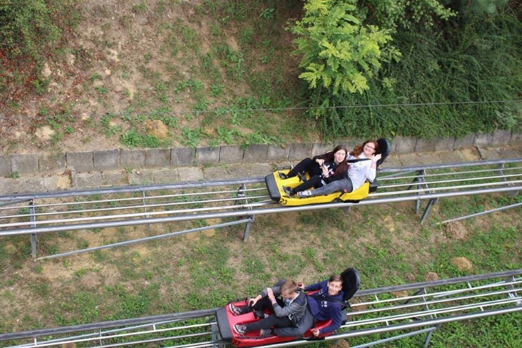 A hazafelé vezető úton ismét a sebességnek hódolhattunk a fűzfői bobpályán, ahol kétféle lejtésű pályaszakaszon csúszhattak a vállalkozó szellemű diákok és tanáraik.