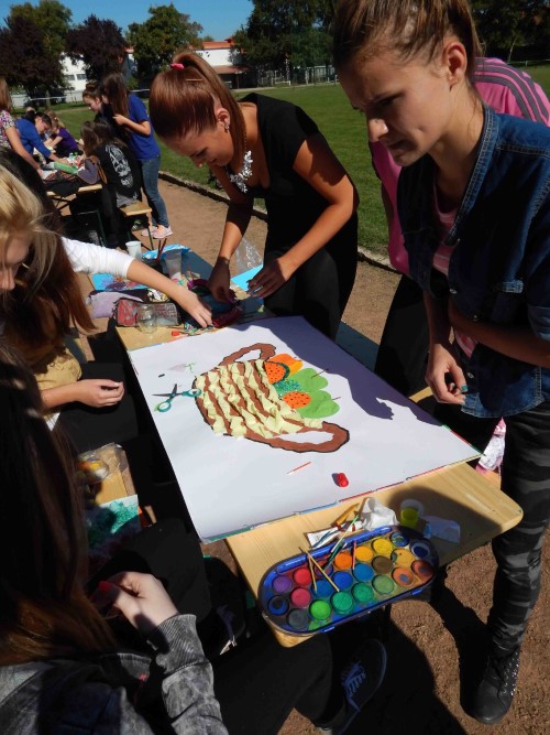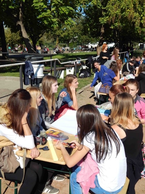 A napot egy bemelegítő flashmobbal kezdtük az iskola előtti útszakaszon, mellyel mintegy megalapoztuk a nap aktív, mozgásos, de egyben kötetlen, felhőtlen jellegét. A felhőtlenség nem csak a hangulatunkra, hanem az időjárásra is igaz volt, hiszen szikrázó napsütésben kezdődhettek a különböző állomásokon zajló tevékenységek.
