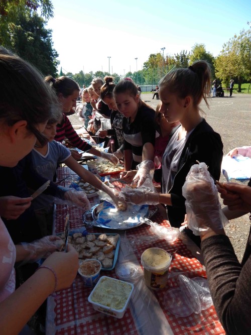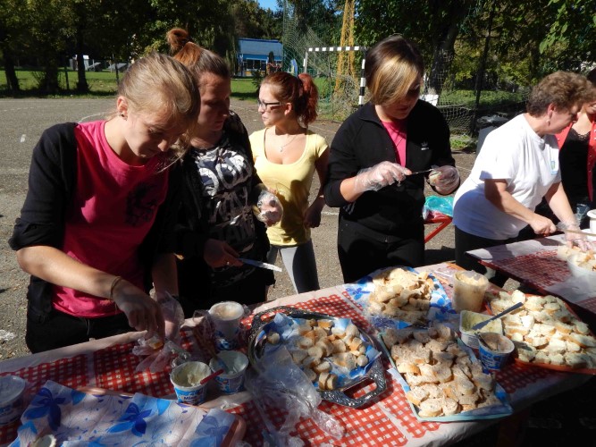 Kurdics Mihály lebilincselő drogprevenciós előadása után együttesen vonultunk ki a sportpályára, és mindenki elfoglalta az előre beosztott helyét a különböző színtereken. Négy helyszínen folytak a programok egymással párhuzamosan, így volt játékos váltóverseny, kreatív plakátkészítő verseny, szellemi vetélkedő illetve egészséges büfé. Mindenki kedve szerint válogathatott, hogy melyik csapatban csillogtatja meg tehetségét. Mialatt a sorversenyben sokszor nagyon szoros harcok folytak a győzelemért, a kreatív felelősök megpróbálták a plakátokba beépíteni a különféle egészséges magvakat, terméseket, melynek köszönhetően szebbnél szebb installációk születhettek. Ez alatt a szellemi vetélkedő résztvevői különböző műveltségi területeken bizonyíthatták tudásukat, és a büfében segédkező szorgos kezek valamint a Bácsalmási Önkormányzati Közszolgáltatási Közhasznú Nonprofit Kft. munkatársainak segítsége által pedig finomabbnál finomabb egészséges falatok, saláták és sütemények készültek el.