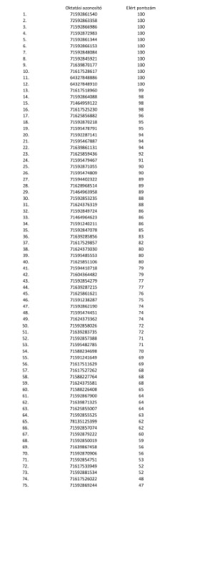 Négyosztályra jelentkezett tanulók ideiglenes rangsora:
